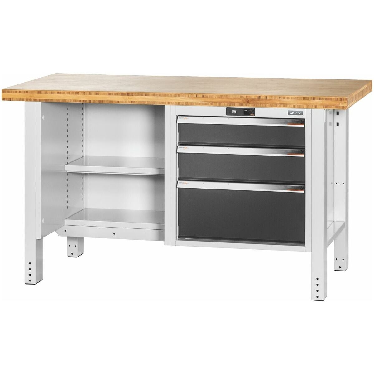 Arbetsbänk, öppen till vänster. till höger 3 utdragslådor, Bambuskiva 1500 mm