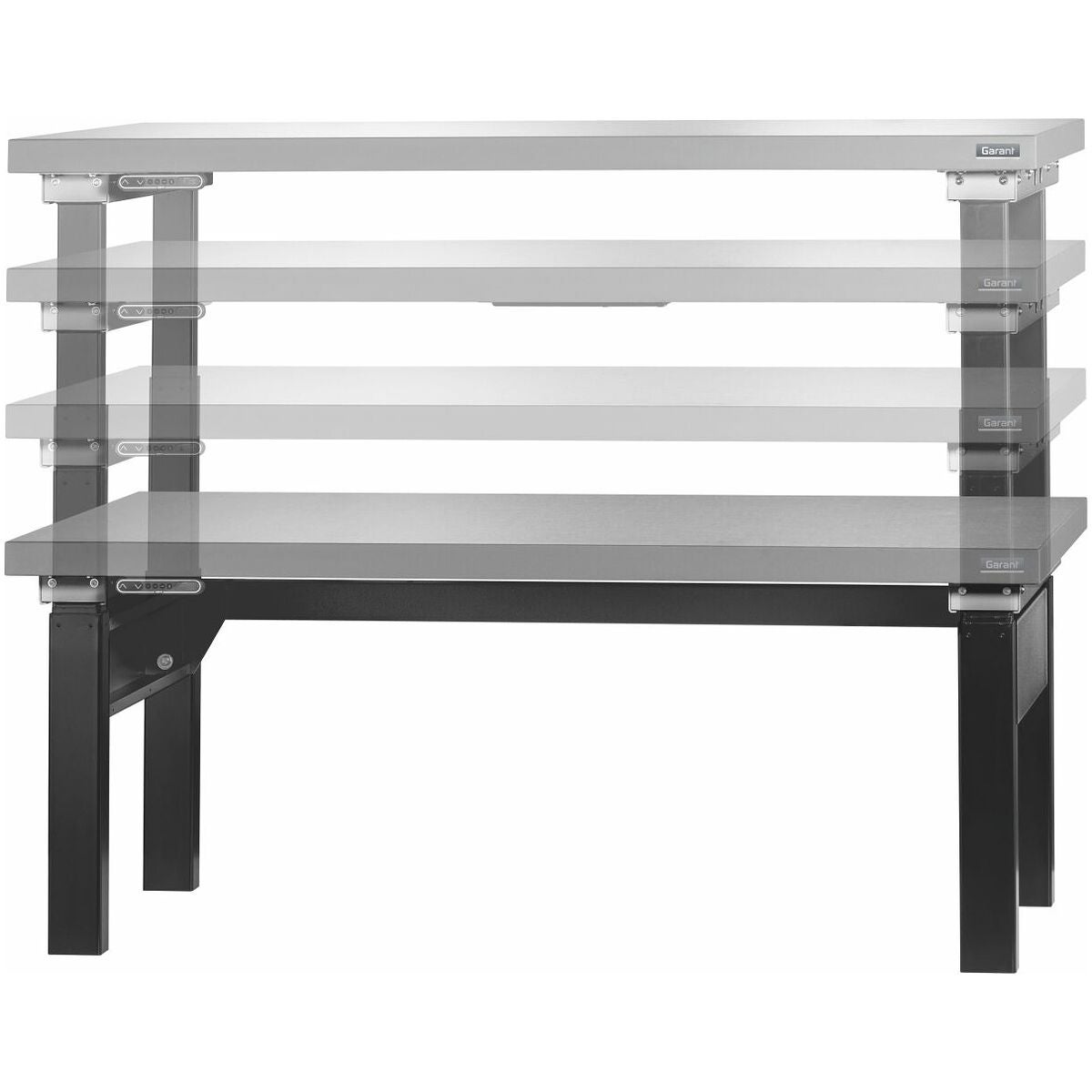 På grund av den största bärförmågan bör enbart åkbara hurtsar användas. Undvik att montera hurtsar under arbetsskivan. Med fler påbyggnadsdelar minskas bärförmågan i motsvarande mån. Levereras komplett monterad.