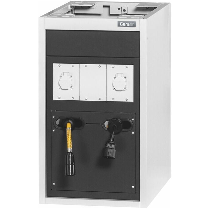 Utrustad med strömmoduler 2 × nr 928470 stl. DE250V/1, slang-/kabelupprullare är fastskruvad i kåpans botten. Längd kabelupprullare 10 m. Längd slangupprullare 10 m.