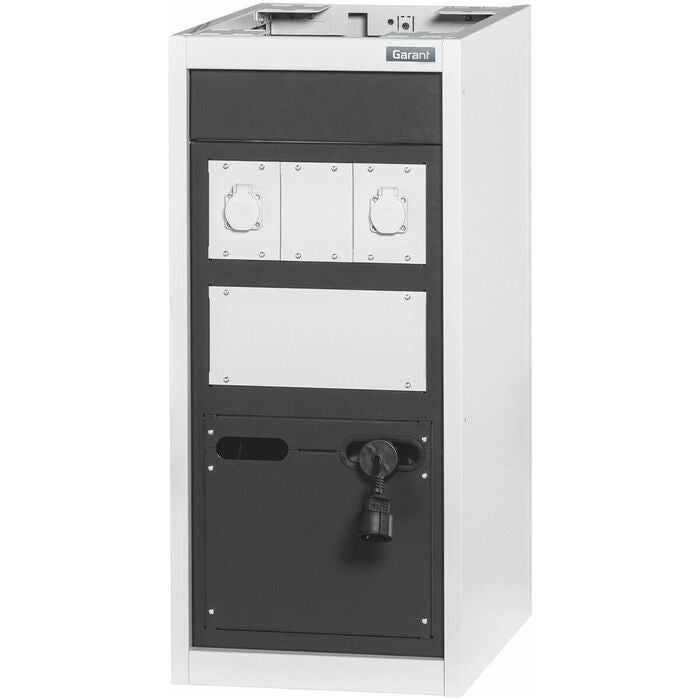Utrustad med strömmoduler 2 × nr 928470 stl. DE250V/1, slang-/kabelupprullare är fastskruvad i kåpans botten. Längd kabelupprullare 10 m. Längd slangupprullare 10 m.