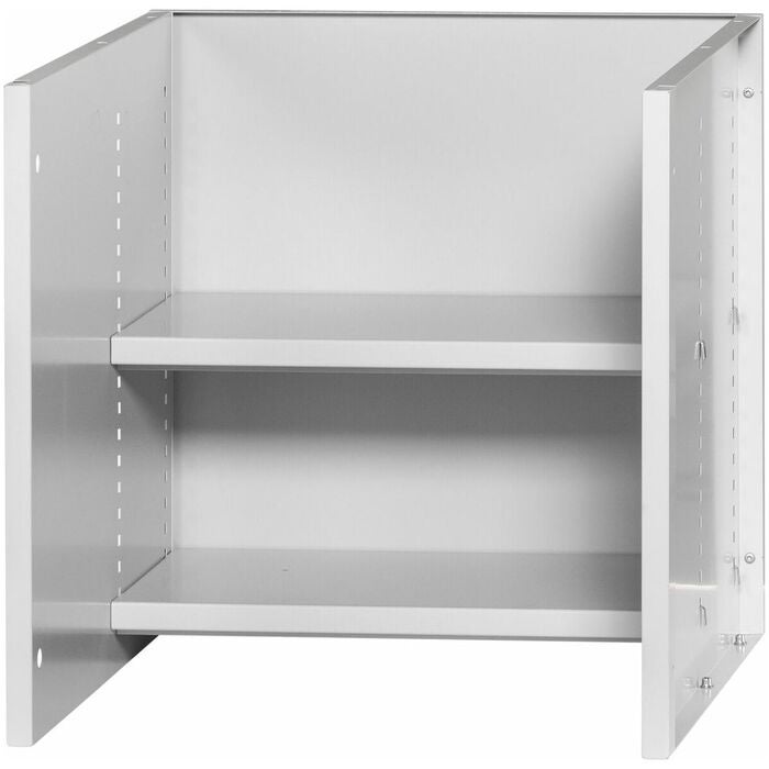 Med indragen bottenplåt och hyllplan, (pulverbelagd, ljusgrå RAL 7035).