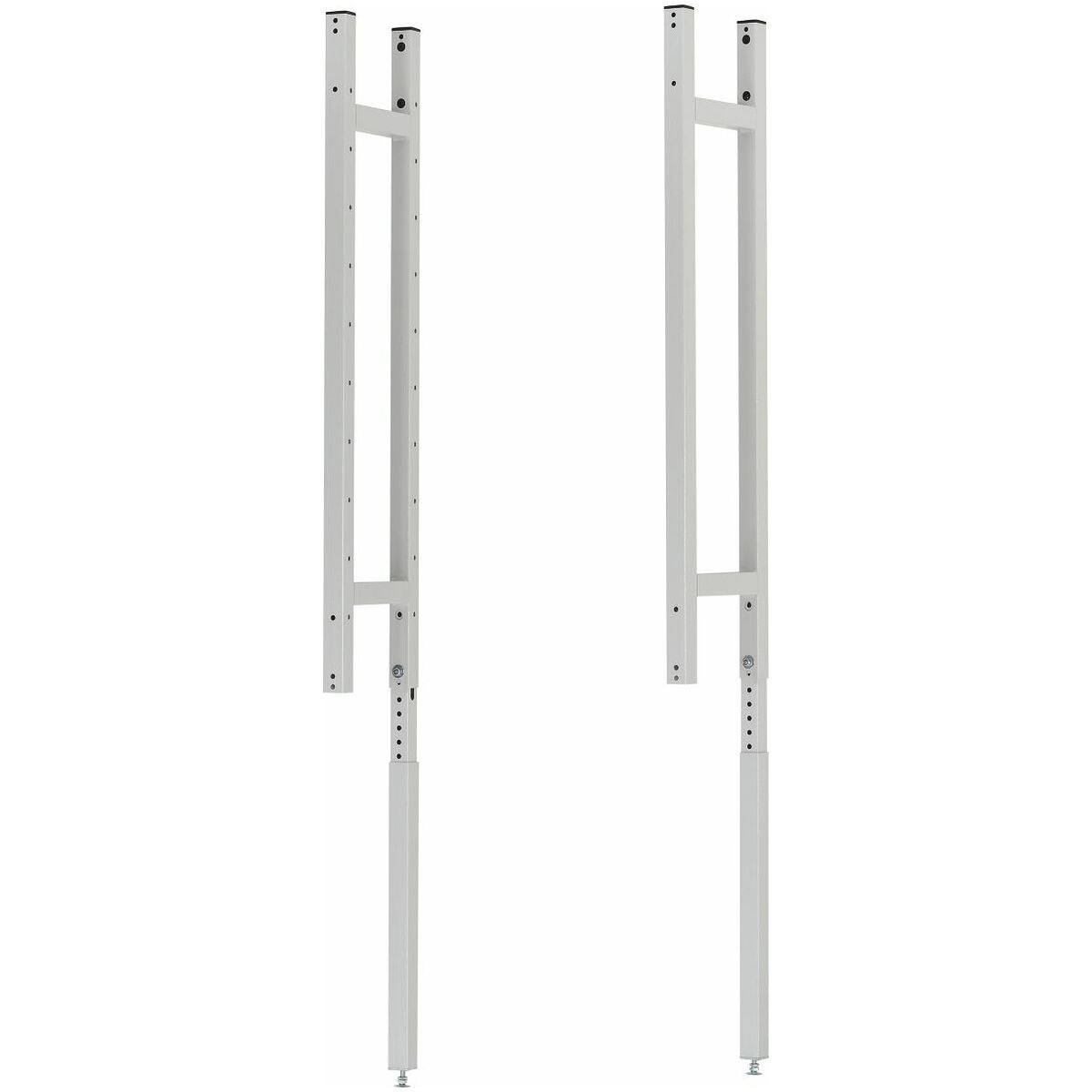 Robust stålrörskonstruktion. Gänghylsor i 100 mm-raster för hyllplan nr 920211.