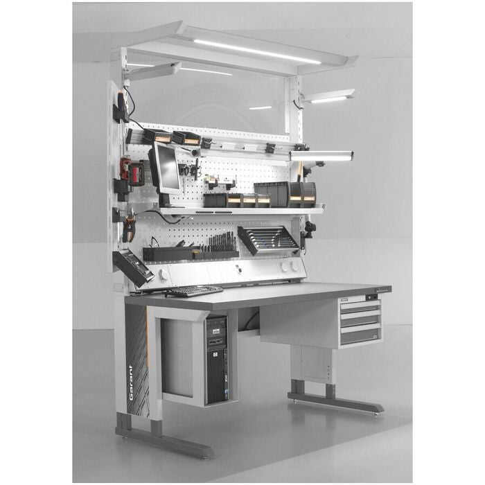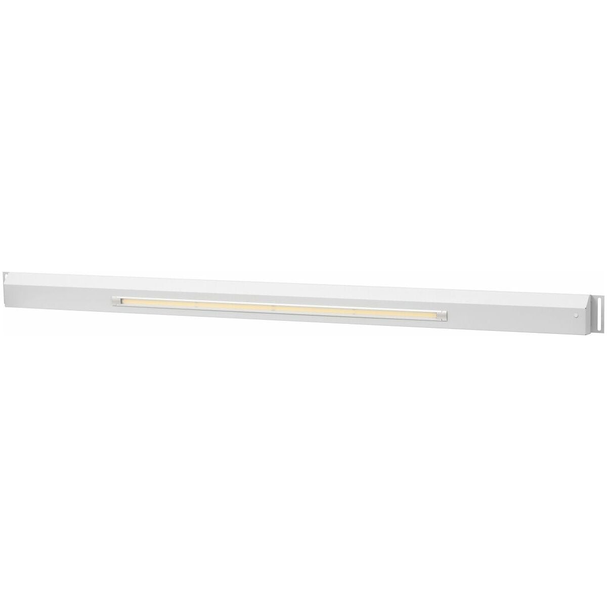 LED-belysningsarmatur med silverfärgad kåpa av stålplåt och täckplåt av PMMA.