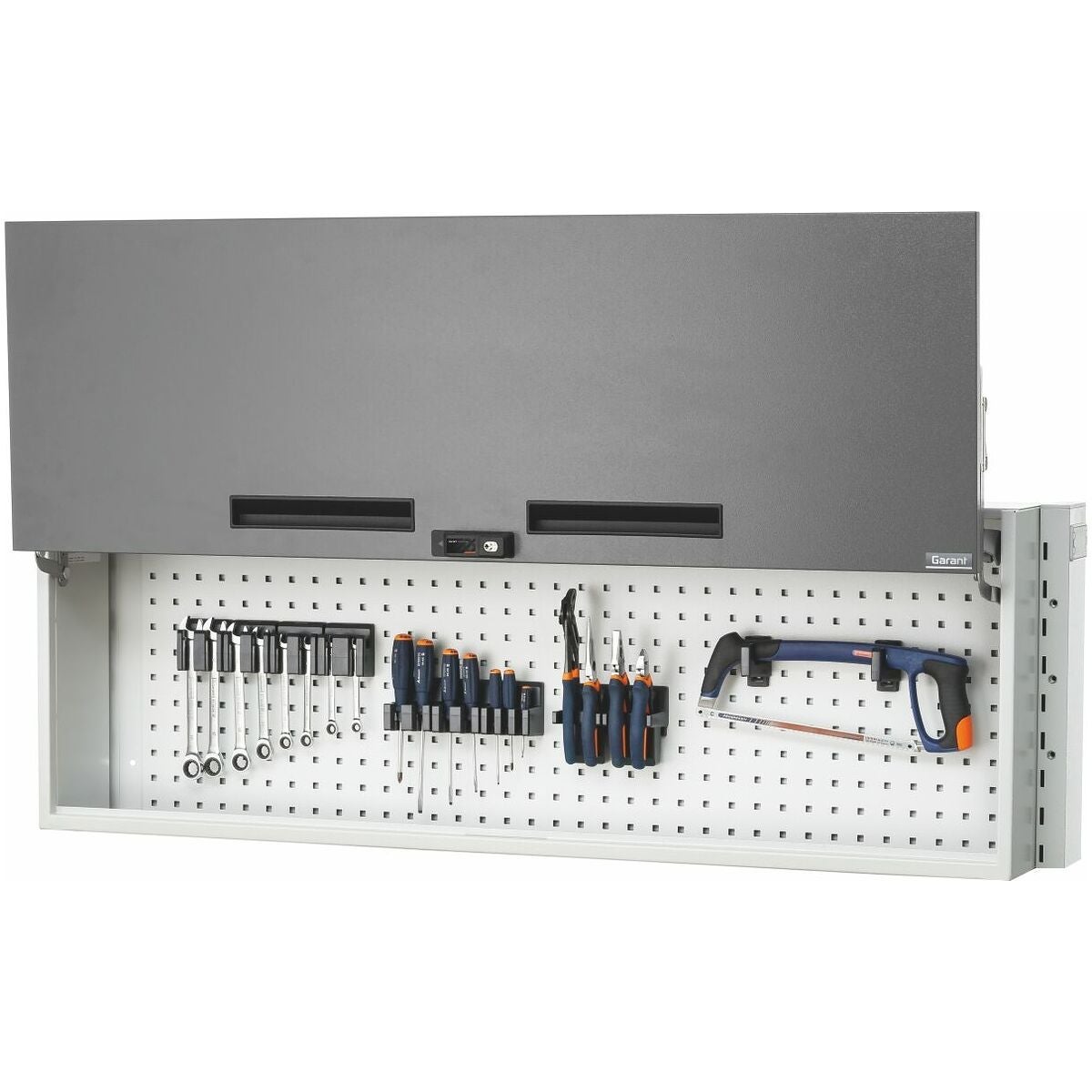 Hölje av stålplåt med dubbel bakvägg (dammskydd). Insida med □ 9×9 mm i 37 mm-raster. Dörrarna svänger fram horisontalt när de öppnas. För montering mellan stolparna nr 928010.