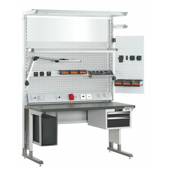 Stomme av stålplåt för fastskruvning på en arbetsskiva. Öppning på sidan för ventilation.