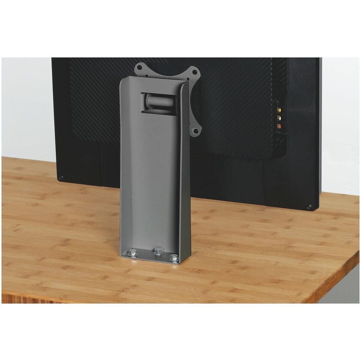 Bildskärmskonsol med VESA-montering (75 mm och 100 mm). Inklusive beslag för fastskruvning på en arbetsskiva.