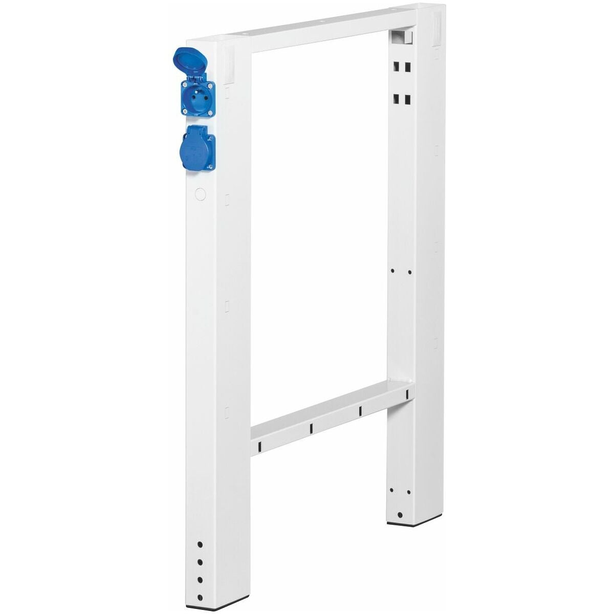 Av stålrör, 50 mm bred, med tvärstagning och fäste för höjdjustering i 25 mm raster. Fötter med plastglidstöd, skonar golvet. Med kabelgenomföringar för enkel och korrekt dragning av medialedningar/kablar.
