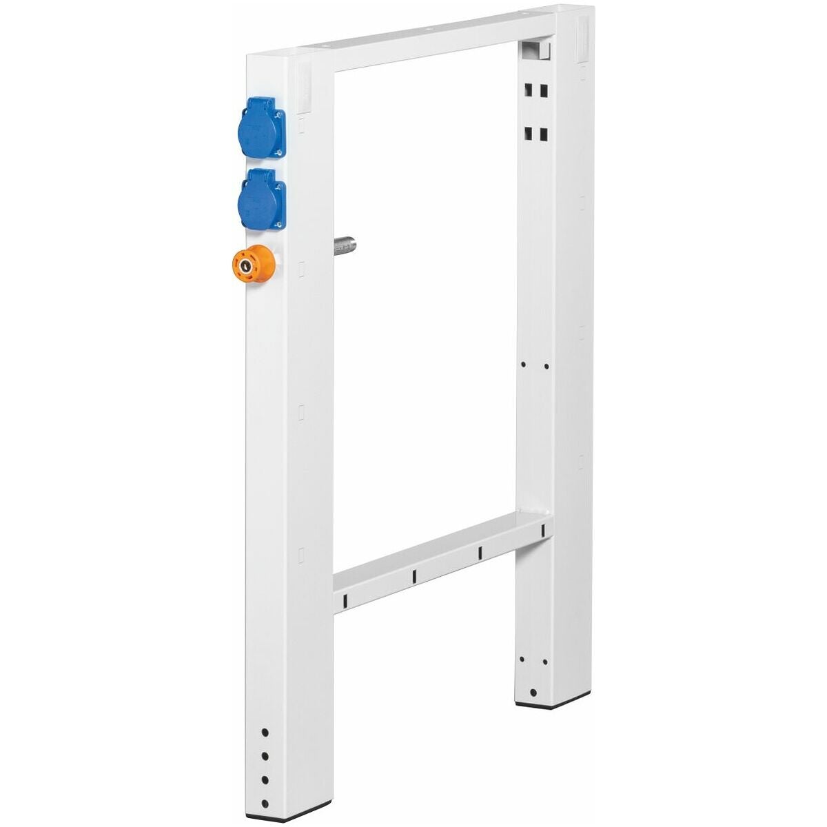 Av stålrör, 50 mm bred, med tvärstagning och fäste för höjdjustering i 25 mm raster. Fötter med plastglidstöd, skonar golvet. Med kabelgenomföringar för enkel och korrekt dragning av medialedningar/kablar.