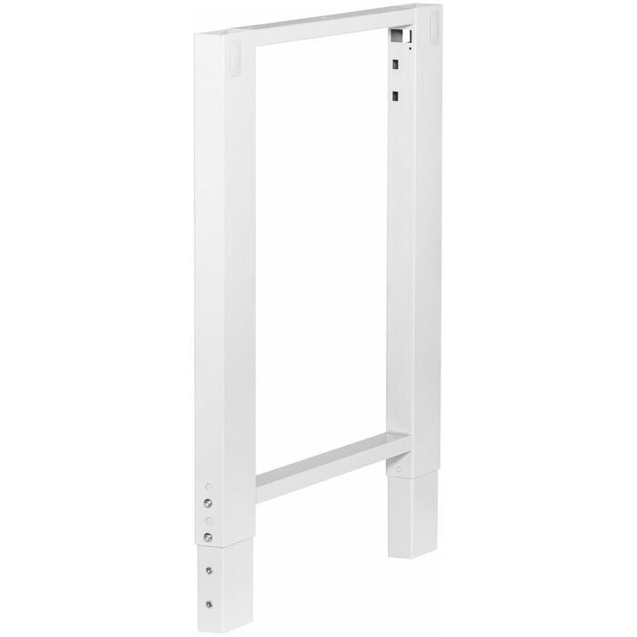 Av stålrör, 50 mm bred, med tvärstagning och fäste för höjdjustering i 25 mm raster. Fötter med plastglidstöd, skonar golvet. Med kabelgenomföringar för enkel och korrekt dragning av medialedningar/kablar.