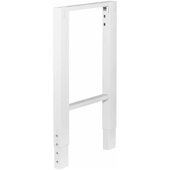 Av stålrör, 50 mm bred, med tvärstagning och fäste för höjdjustering i 25 mm raster. Fötter med plastglidstöd, skonar golvet. Med kabelgenomföringar för enkel och korrekt dragning av medialedningar/kablar.