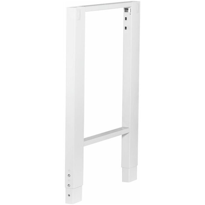 Av stålrör, 50 mm bred, med tvärstagning och fäste för höjdjustering i 25 mm raster. Fötter med plastglidstöd, skonar golvet. Med kabelgenomföringar för enkel och korrekt dragning av medialedningar/kablar.