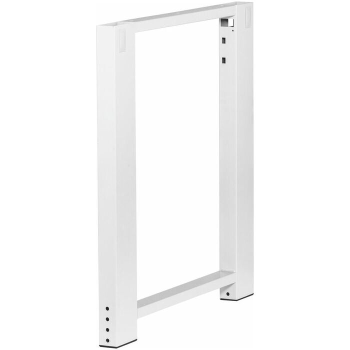 Av stålrör, 50 mm bred, med tvärstagning och fäste för höjdjustering i 25 mm raster. Fötter med plastglidstöd, skonar golvet. Med kabelgenomföringar för enkel och korrekt dragning av medialedningar/kablar.