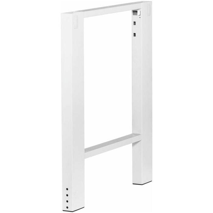 Av stålrör, 50 mm bred, med tvärstagning och fäste för höjdjustering i 25 mm raster. Fötter med plastglidstöd, skonar golvet. Med kabelgenomföringar för enkel och korrekt dragning av medialedningar/kablar.