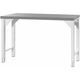 Arbetsbänk i stabil stålkonstruktion. 50 mm breda ben med tvärstag och fäste för höjdjustering. Fötter med plastglidstöd skonsamma mot golvet. Med två par skarvplåtar för förstyvning.