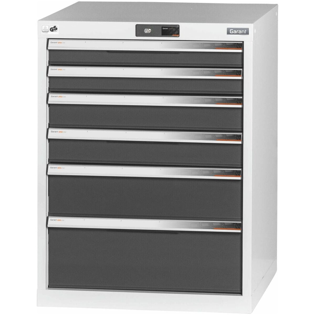 Komplett utrustat verktygsskåp i 24×28G, med utdragslådor 20×24G. Centralt låsbart med stiftcylinderlås.
