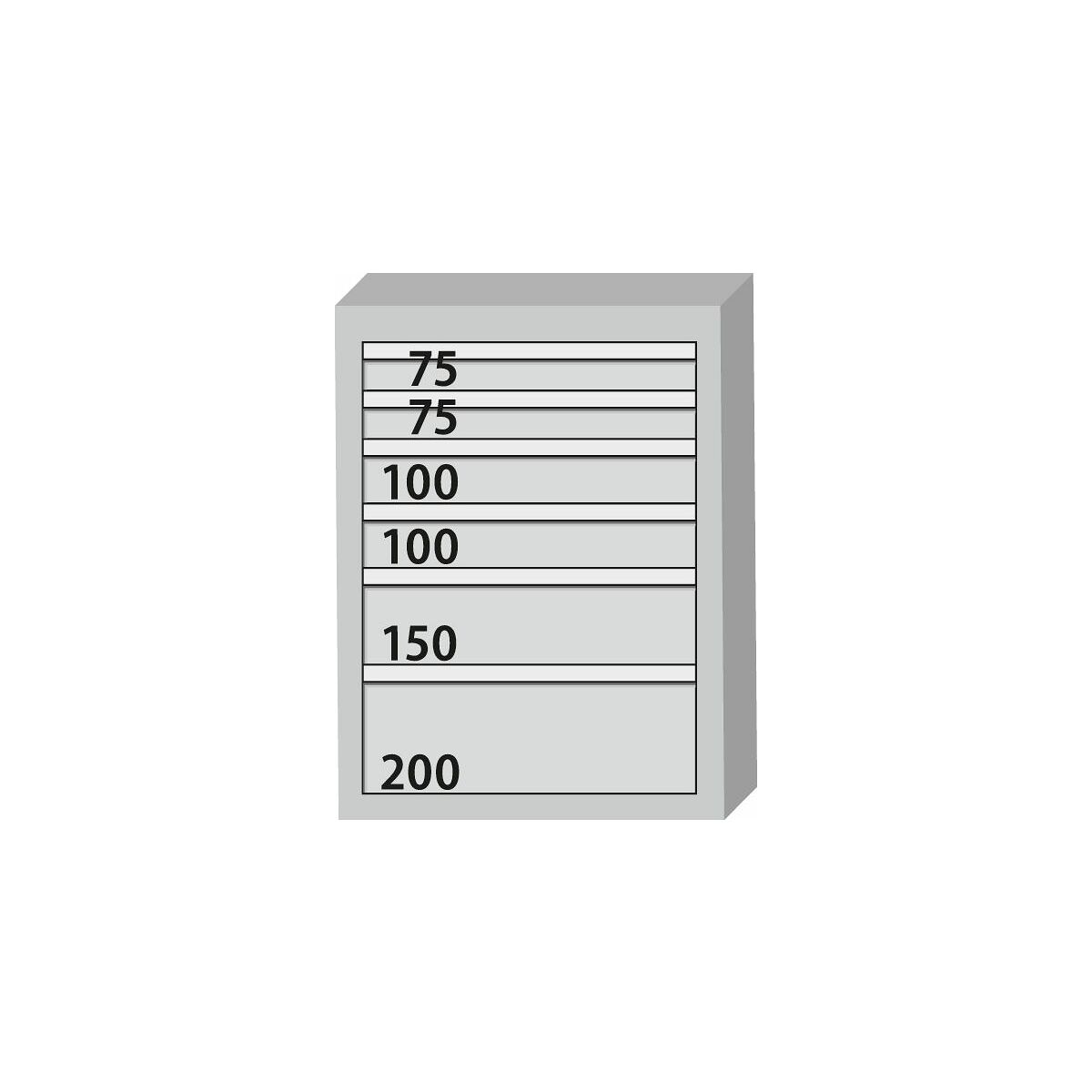 | Lådor fronthöjd | 75 mm; 75 mm; 100 mm; 100 mm; 150 mm; 200 mm |