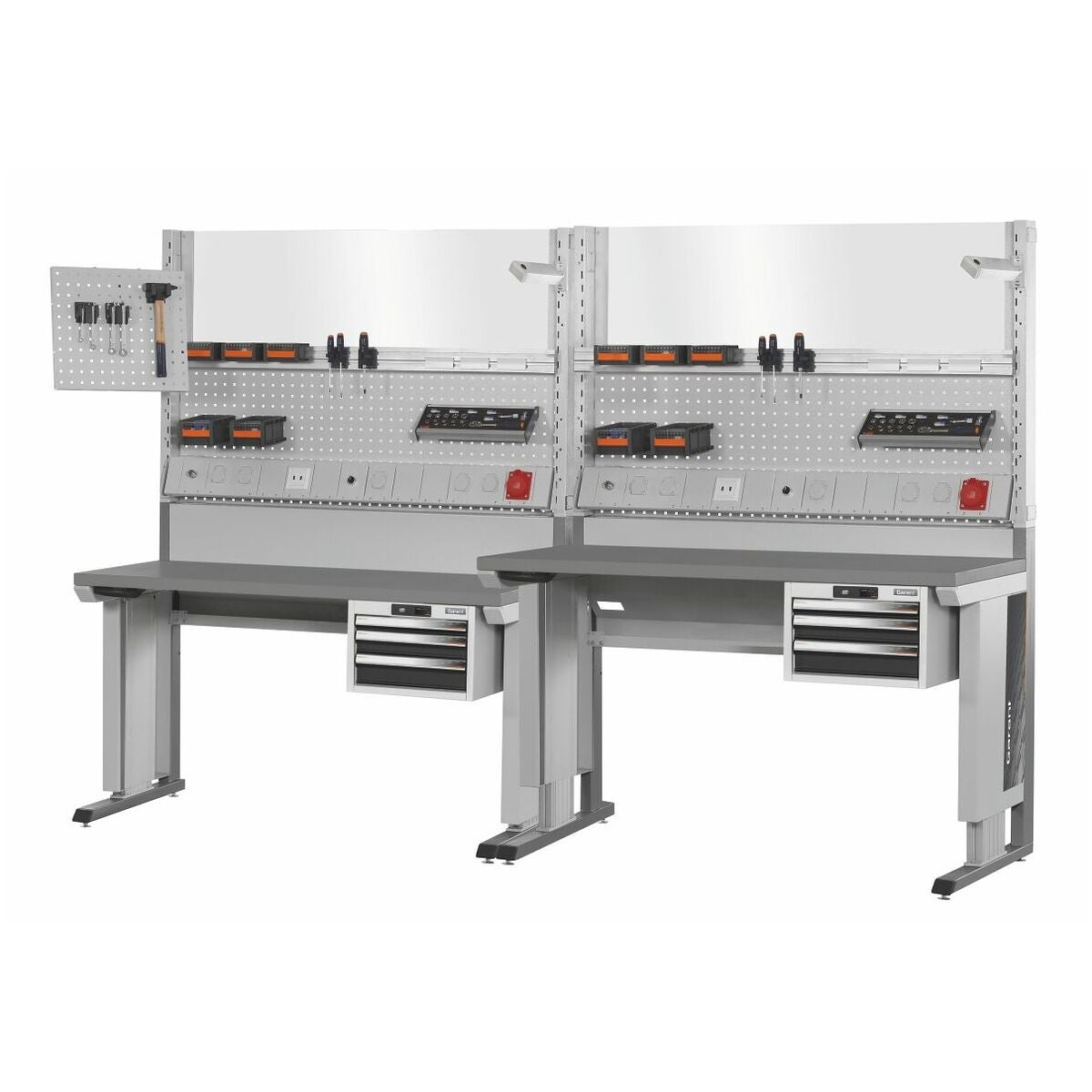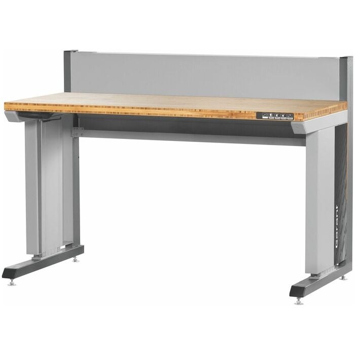 eLevel+ endast arbetsskivan justeras i höjdled, resten av arbetsplatsen förblir oförändrad. Bakvägg med integrerad kabelkanal.