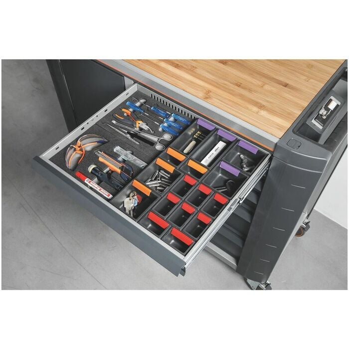 Etiketthållare att sätta på easyPick smådelslådorna. Märkning direkt med vattenlöslig penna eller med etiketterna Avery Zweckform L7656-25 (för stl. 2) och Avery Zweckform L7658-25 (för stl. 3). Etiketter ingår inte i leveransen.