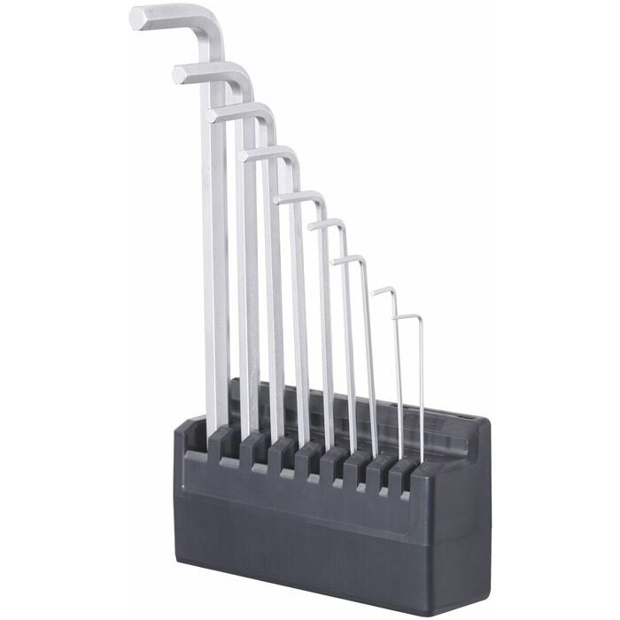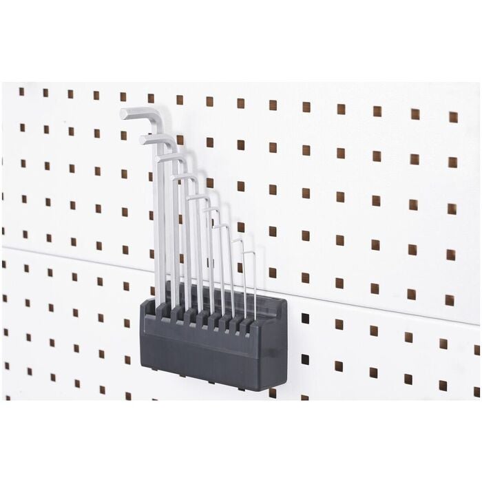 Förvaring av 9 insexskruvmejsel i storlekarna 1,5 − 10. Kan även användas stående på arbetsskivan.