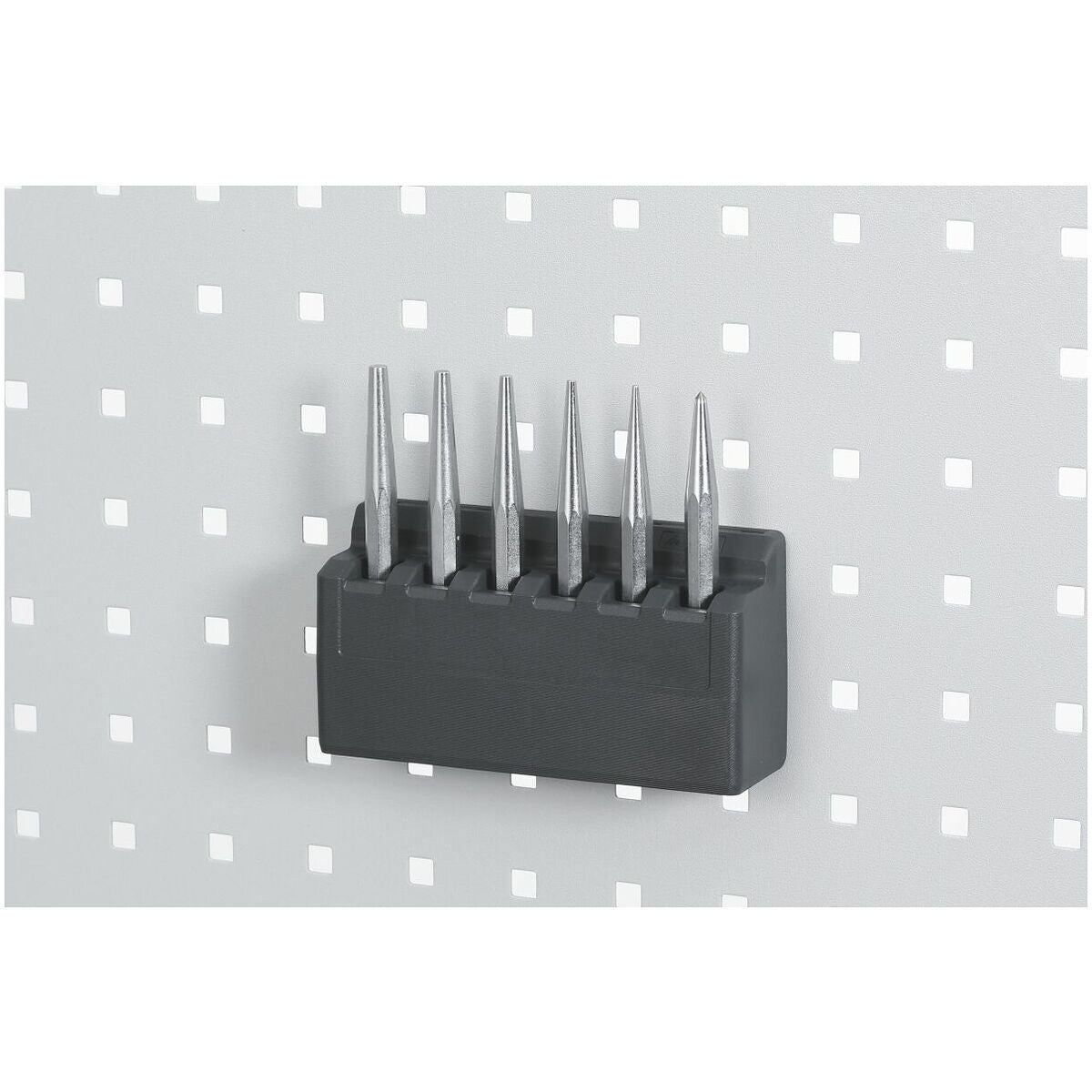 Inga verktyg behövs – kan enkelt sättas fast i perforerad panel med endast en hand. Stadig fixering utan fastskruvning, vilket förhindrar att den perforerade panelen repas.