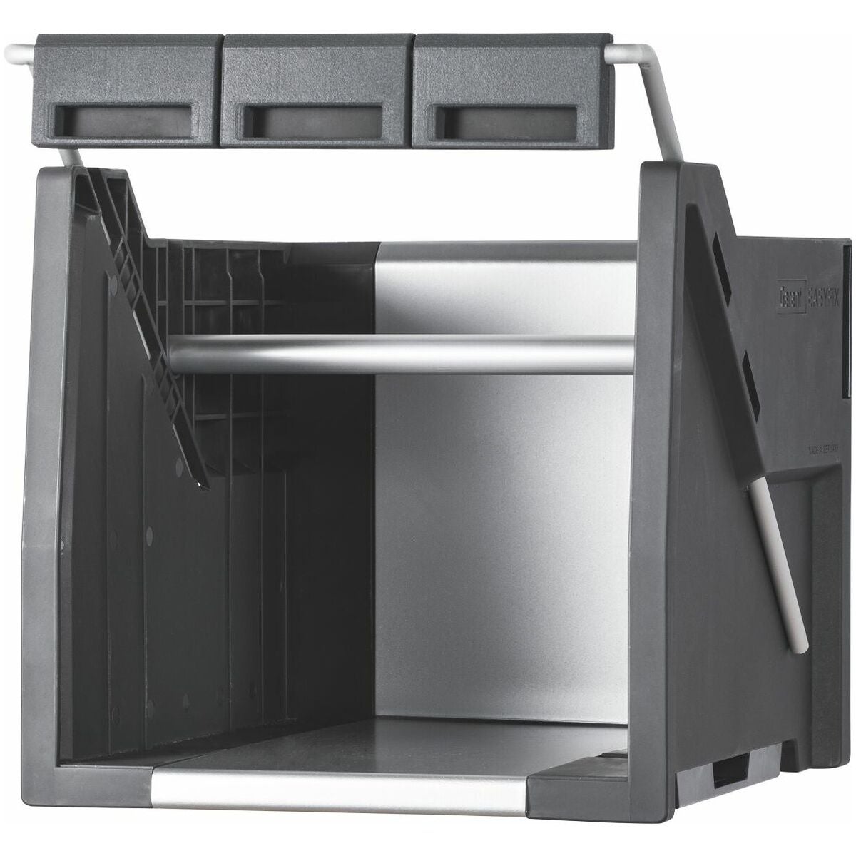 Kabelrullhållare av plast med aluminiuminsats (stl. 3 och 5), trådbygel ⌀ 6 mm med kabelbroms förhindrar obromsad utrullning av kablar. Trådbygeln kan justeras på djupet. Aluminiumaxeln ⌀ 12 mm sätts i plasthållaren uppifrån, vilket underlättar bytet av kabelrullar. Max. diameter på kabelrullar 200 mm.