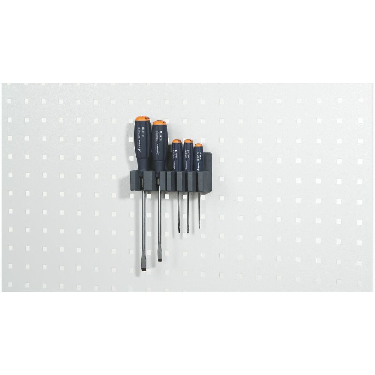 Inga verktyg behövs – kan enkelt sättas fast i perforerad panel med endast en hand. Stadig fixering utan fastskruvning, vilket förhindrar att den perforerade panelen repas.