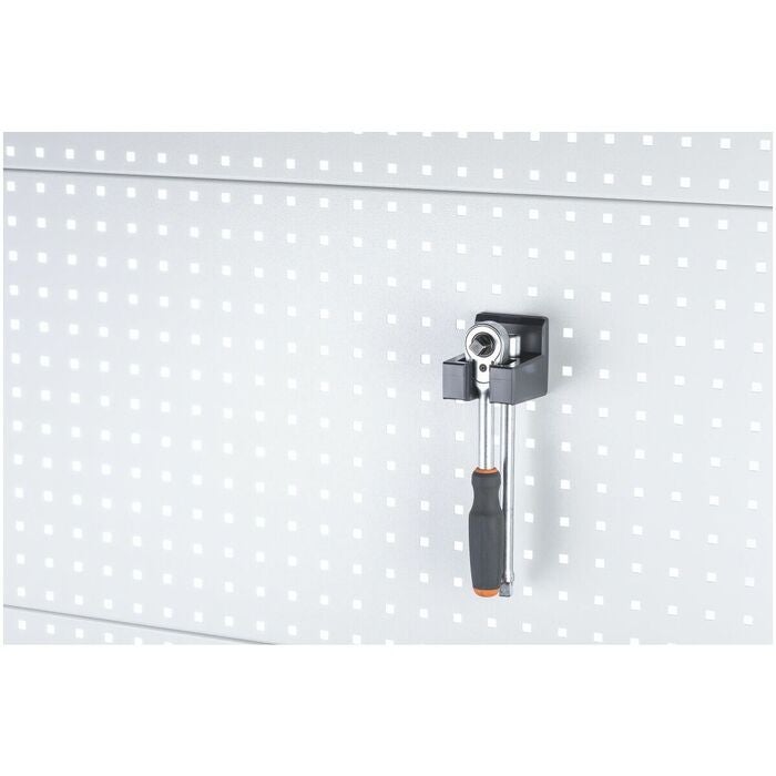 Inga verktyg behövs – kan enkelt sättas fast i perforerad panel med endast en hand. Stadig fixering utan fastskruvning, vilket förhindrar att den perforerade panelen repas.