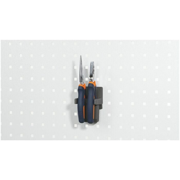 Inga verktyg behövs – kan enkelt sättas fast i perforerad panel med endast en hand. Stadig fixering utan fastskruvning, vilket förhindrar att den perforerade panelen repas.