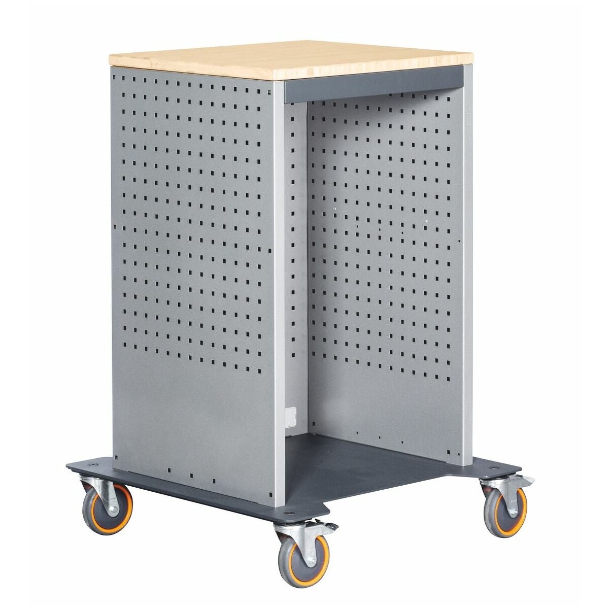 Halvhögt GARANT Uni Line Z-Tower med 25 mm tjock avställningsskiva av bambu. På alla in- och utsidor perforerade paneler □ 9×9 mm i 37 mm-raster för fastsättning av tillbehör till perforerade paneler och GARANT easyFix krokar och hållare. På baksidan med borstlist för kabelgenomstick samt extra kabelgenomföring. Representativt modulärt utlämningssystem för direkt åtkomst till arbetsmaterial och snabb visualisering av information. Variabel och universellt användbar för olika tillämpningar och utrustningar. 2 sidväggar med bakvägg.