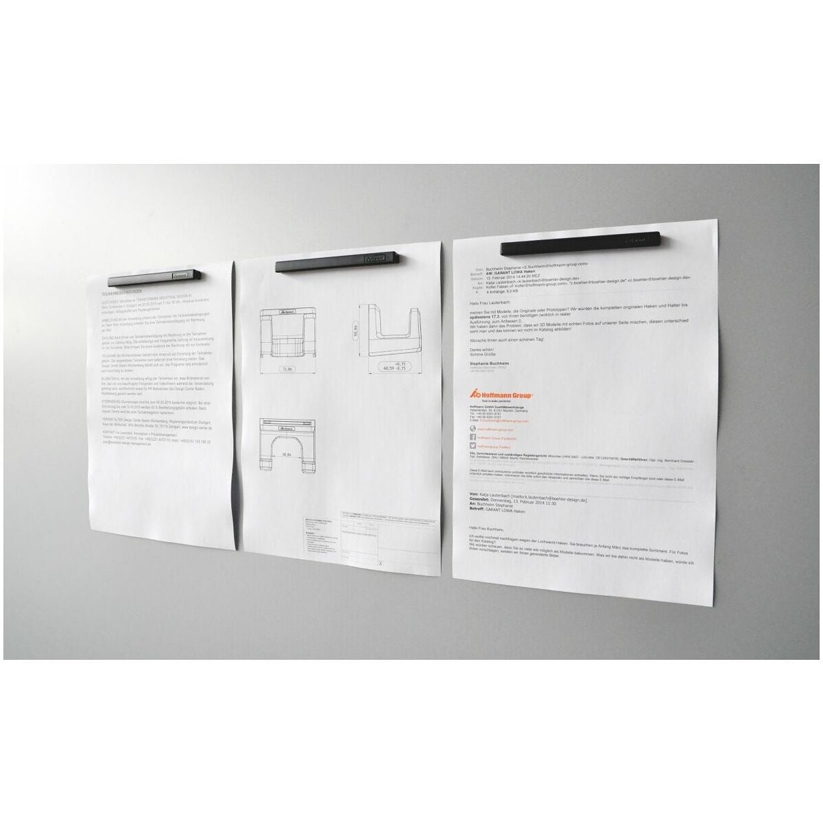 Plaststick med två starka, inpressade neodym-magneter. För bättre ordning på arbetsplatsen. För fastsättning av ritningar och arbetsuppdrag på metallunderlag. Tack vare avståndet på 84 mm mellan magneterna kan inte dokumenten vridas eller lyfta sig.