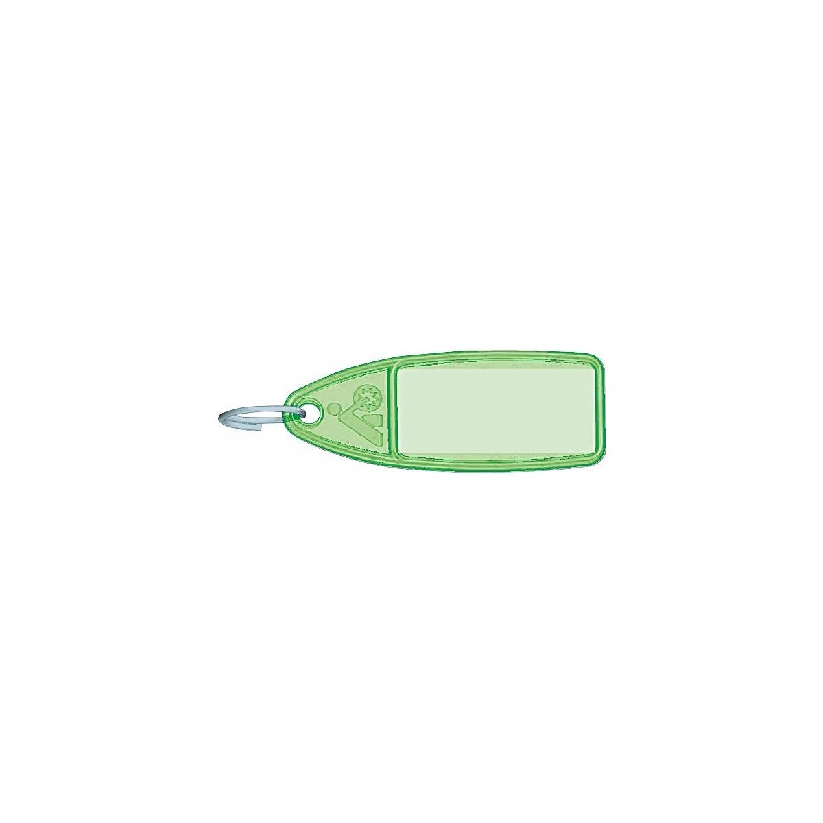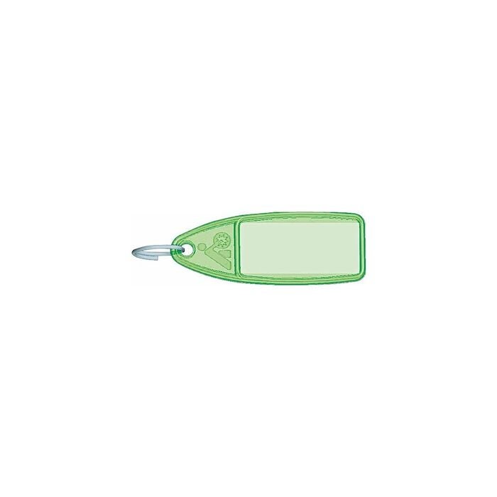 Snygg design med nyckelring och pappersinlägg för påskrift. Skyddet över pappersinlägget öppnas och stängs med ett filmgångjärn.