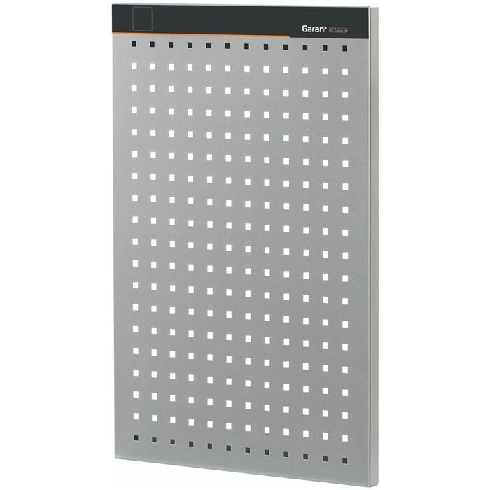 Robust kantad stålplåt □ 9×9 mm i 37 mm raster för infästning av tillbehör till perforerade paneler och GARANT easyFix krokar och hållare.