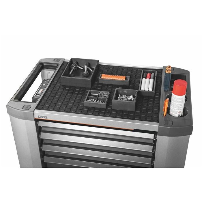 GridLine matta av naturgummi för uppläggning på verkstadsvagnen. Det utpräglade GridLine-rastret hindrar cylindriska komponenter från att rulla och används för fastsnäppning av easyPick smådelslådor nr 951210, nr 951251 och nr 951265 och fack nr 951415 och nr 951425 på mattan. Mattjocklek 2 mm i spår, 4 mm i upphöjningar.