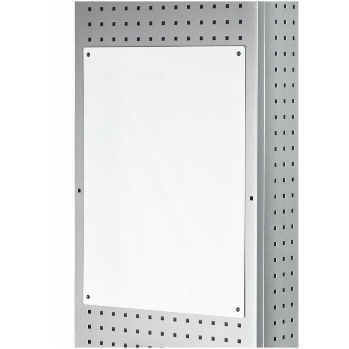 Whiteboardtavla utan ram, med vitlackerad yta. Tavlan är avtorkbar, skrivbar och magnethäftande. Med 4 GARANT easyFix plastpluggar och skruvar för fastsättning på perforerade paneler. Kan monteras stående eller liggande.