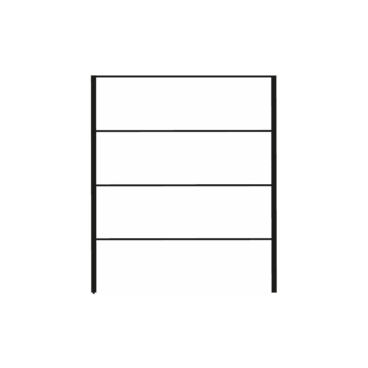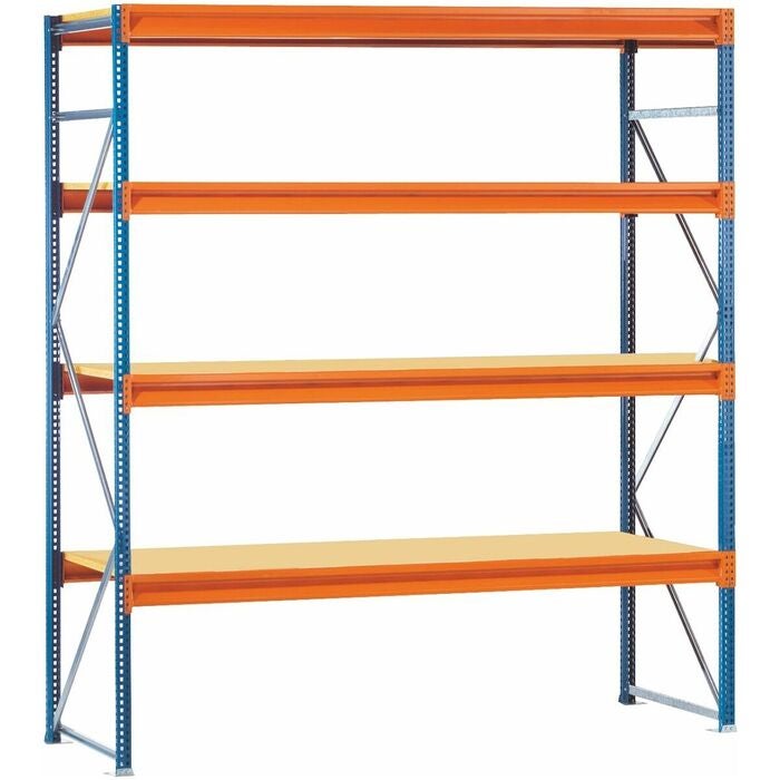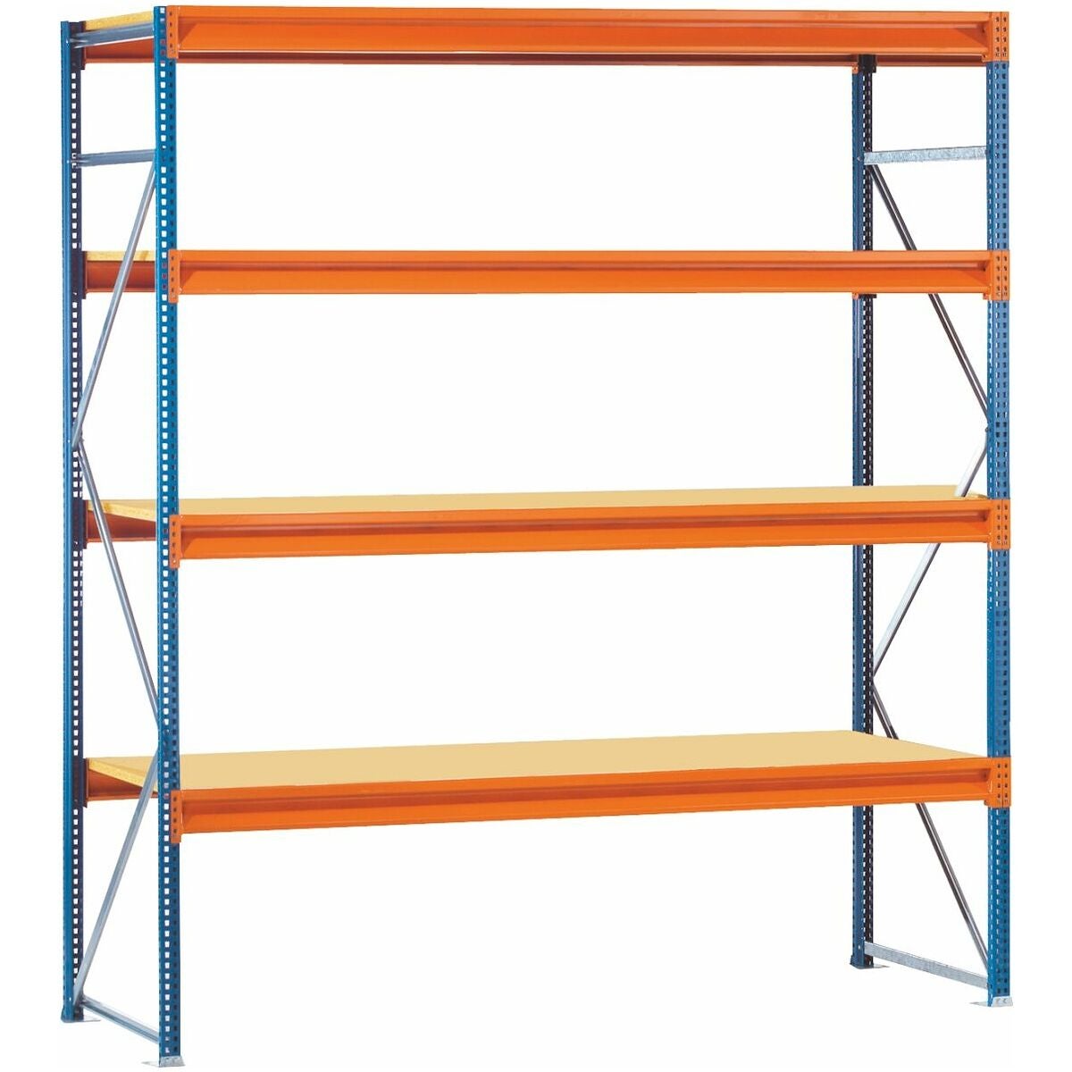 Förzinkat fackverk. Alternativt med förzinkade 25 mm stålpaneler eller spånskivor. Olika balktyper allt efter erforderlig hyllplanlast (tvärbalkhöjd 55 − 85 mm). Snabb uppbyggnad genom att bara sticka in balkar typ ZG.