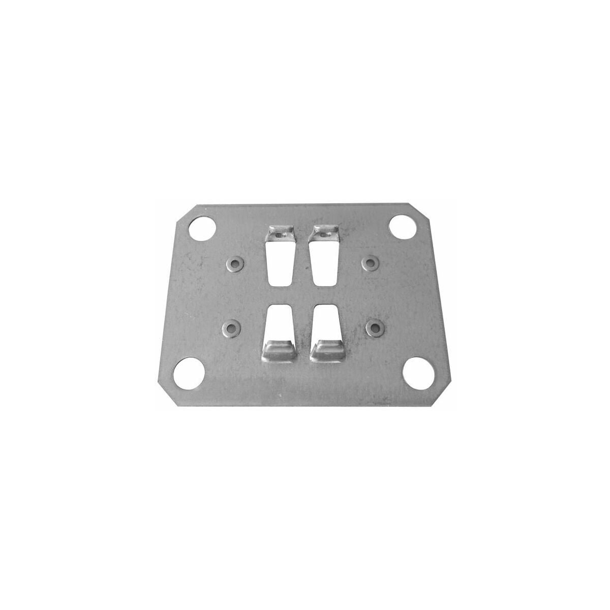 Förzinkad dubbel klämfot för instickshyllställ, hyllställ med sneda hyllplan och extra breda WS-2000-hyllor.