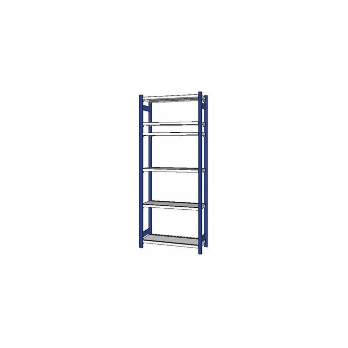 Stabil stolpram av rektangulära profiler (50×25×1,25mm) med upphängningsslitsar i 40 mm raster för infästning av tvärbalkar och hyllor. Stolpramar med ändlock av plast.