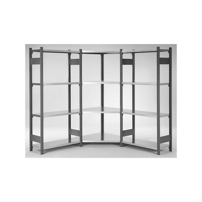 Stabil hörnstolpram av rektangulära profiler (50×25×1,25 mm) med upphängningsslitsar i 40 mm raster för infästning av tvärbalkar/hyllplan. Stolpramar med ändlock av plast. Uppbyggnaden sker genom insticksmontering utan verktyg. Tack vare den höga sidostabiliteten behövs inga diagonalsträvor för stabiliseringen. Hyllplan av förzinkad plåt.