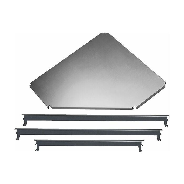 Hörnhyllplan, förzinkade med tvärbalkar