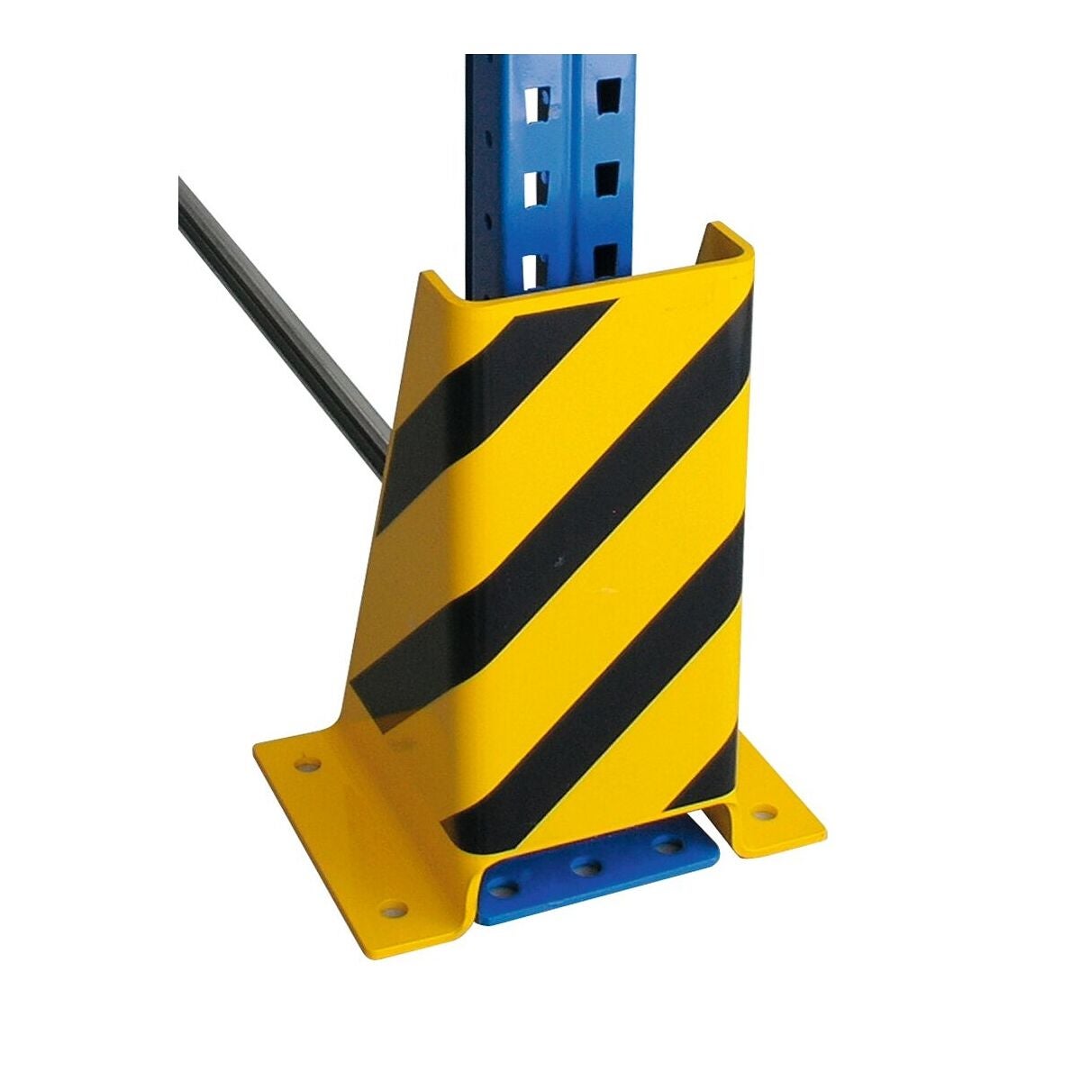 Krockskyddshörn inklusive 4 skruvankare. För skydd mot skador förorsakade av hyllmanöverenheter. Stabil, vinkelformad profil i säkerhetsfärgerna svart/gul.