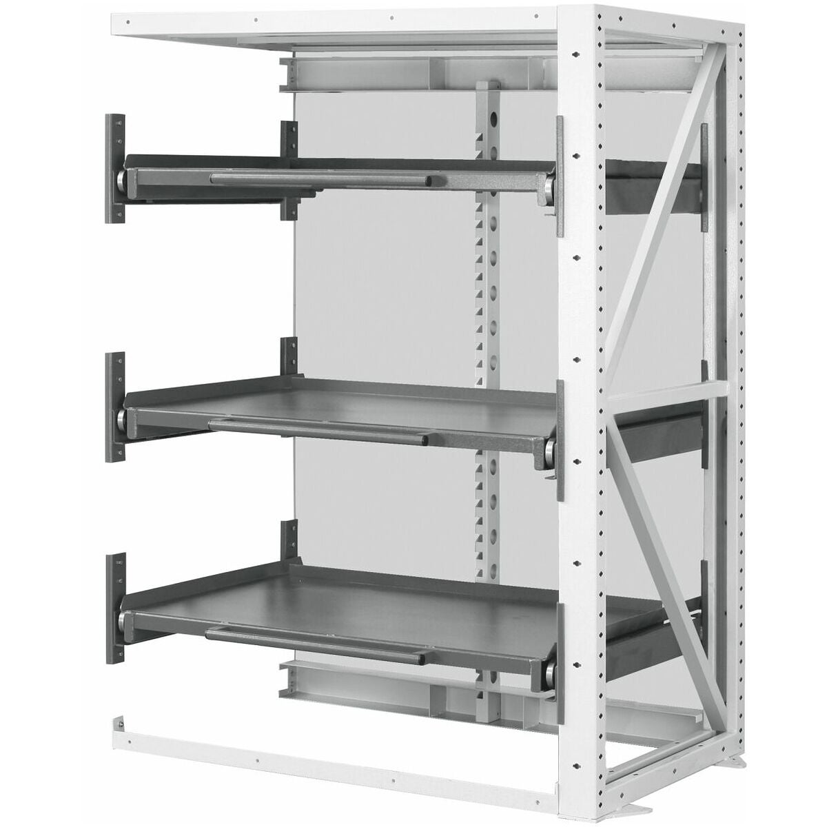 Påbyggnadsställ för tung last, med 1 stolpram med 100 % utdragbar hylla Effektivt djup 950 mm