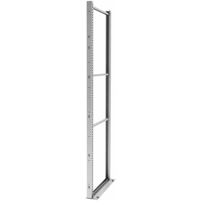 Stålplåt med stagningar, helsvetsade. De vertikala stödstängerna är försedda med perforeringar på avstånd 25: 25 mm, för att sätta fast lådor, utdragshyllor eller hyllor. Bottenfläns med gängade hylsor för höjdutjämning och golvförankring. Med hål för montering av fästet för enhands-enkelförregling nr 998290 och 998292.
