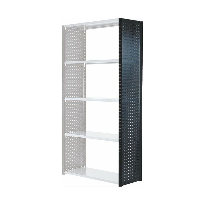 För sidintäckning i ändan av ett hyllställ (kan inte monteras mellan två hyllställ). För täckning av ett fullständigt hyllfält åt vänster och höger måste 2 sidoväggar beställas.