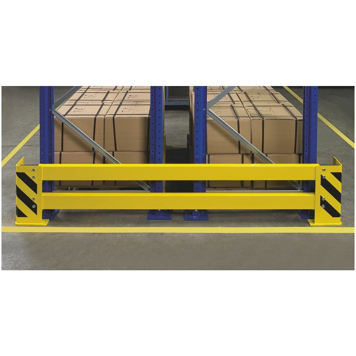 Zinkgul RAL 1018 pulverbelagd med svart varningsmarkering.