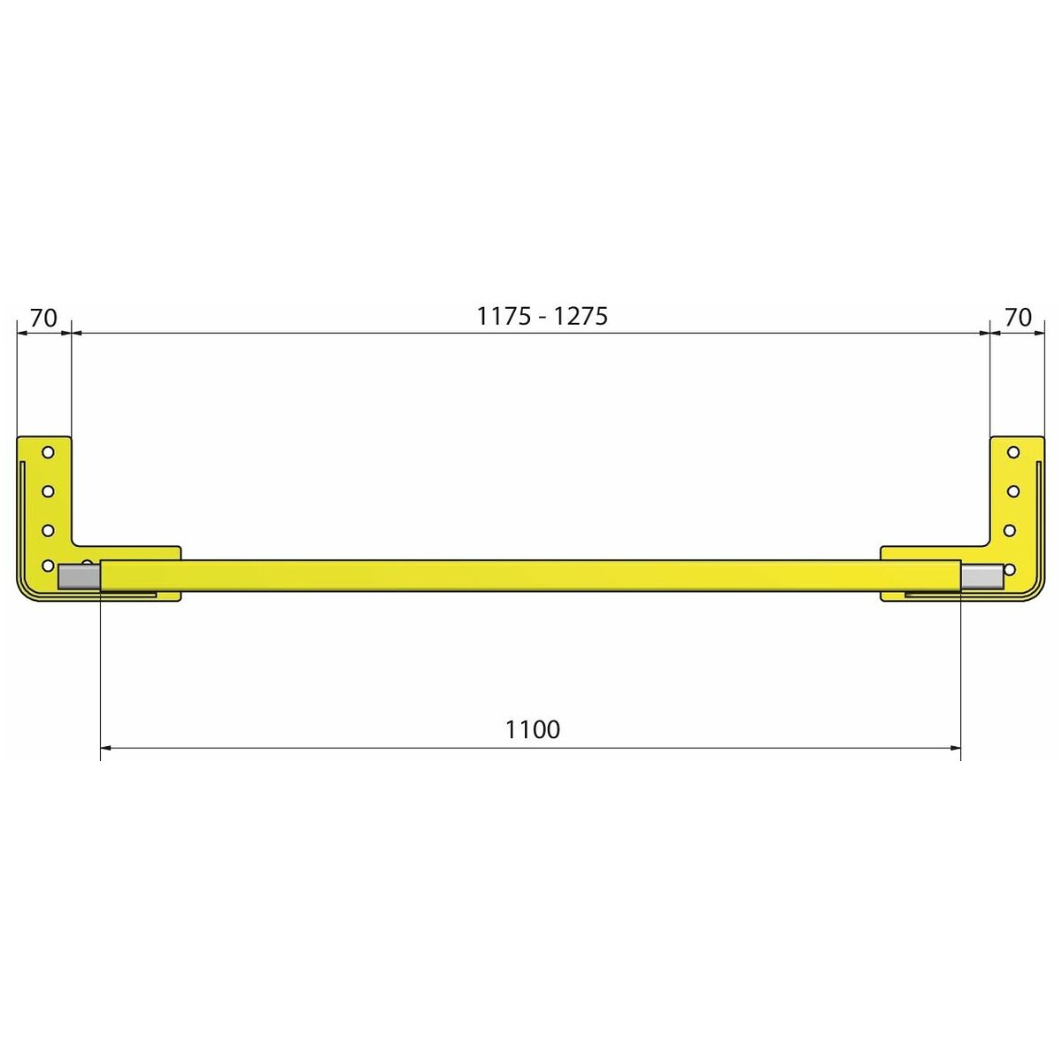 Krockskyddsplanken skjuts in i skyddshörnens hållare, per hållare finns ett längd-/inställningsområde på 50 mm.