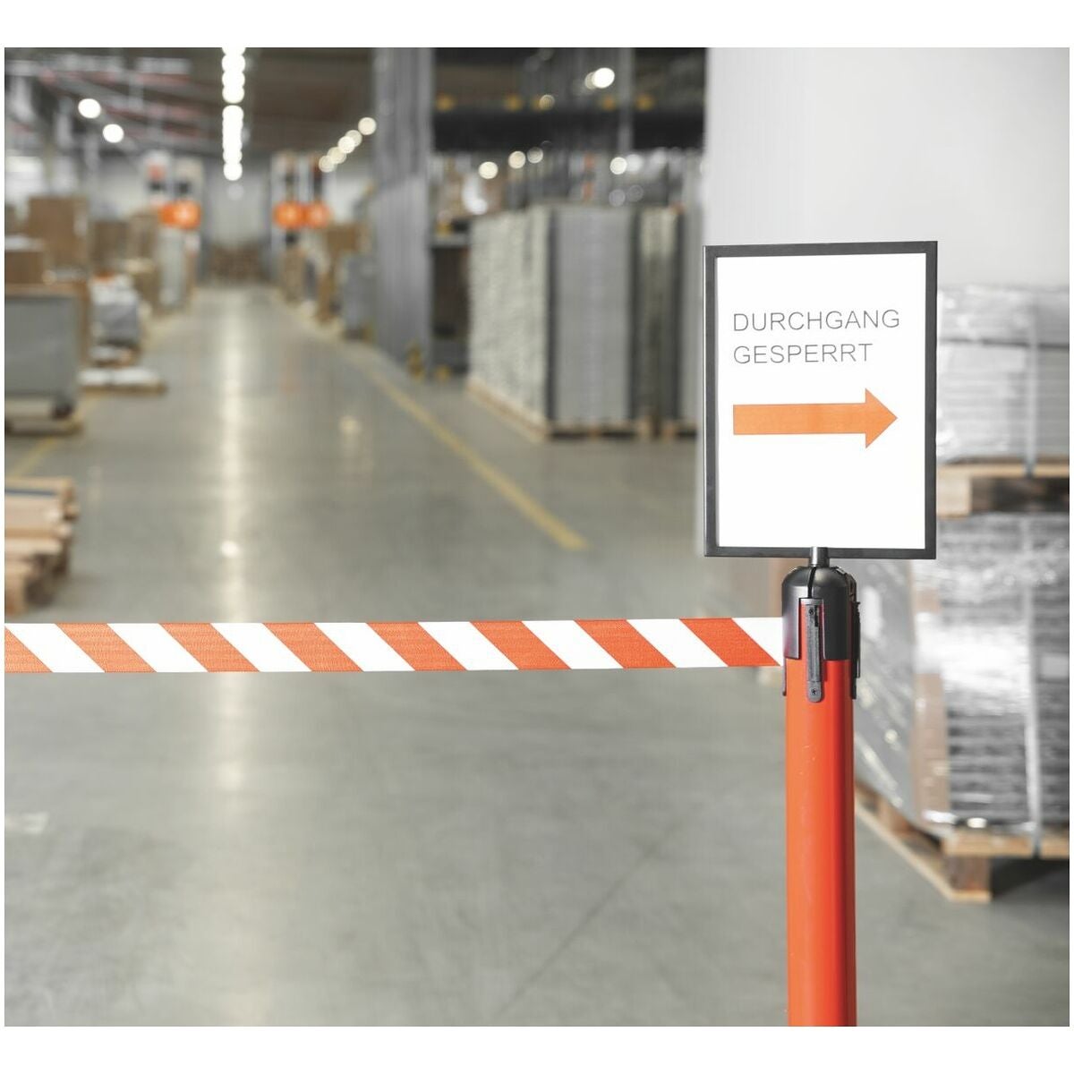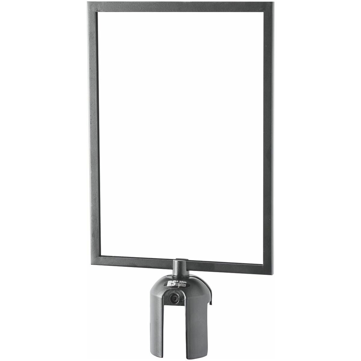 Skylttavla att sätta på avspärrningsstolparna. Svart metallram med plexiglasrutor. Reklammeddelanden eller information kan enkelt infogas i de dubbelsidiga plexiglasrutorna. Skylttavlorna kan roteras på stolpen.