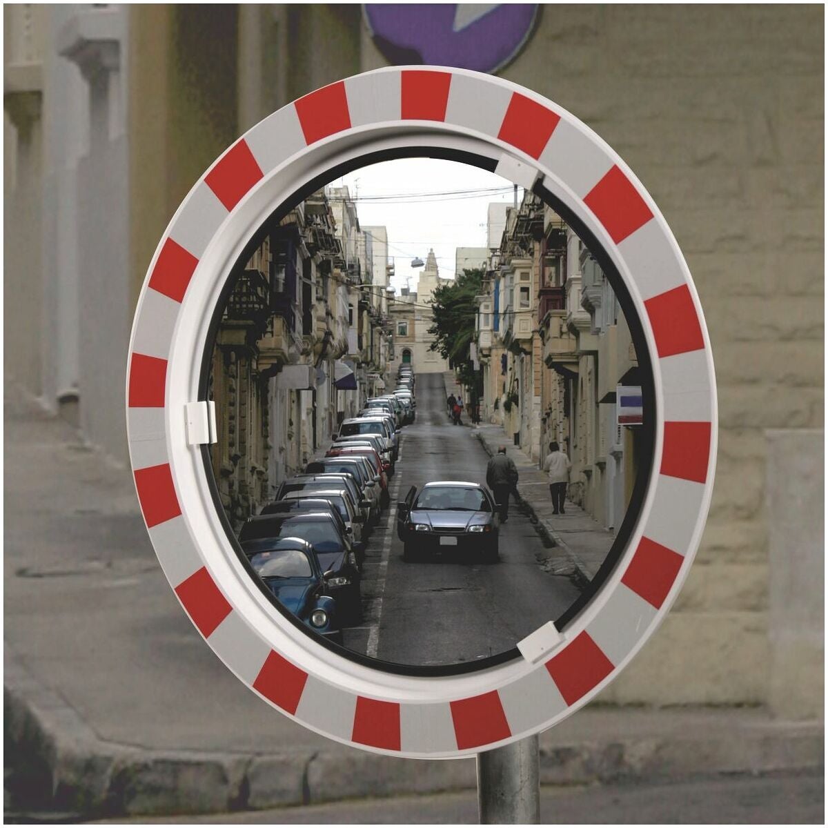 För bättre sikt vid farliga trafikvägar med dålig sikt och oöversiktliga industrianläggningar. Minimering av risken för olyckor. Av slagfast akrylglas.