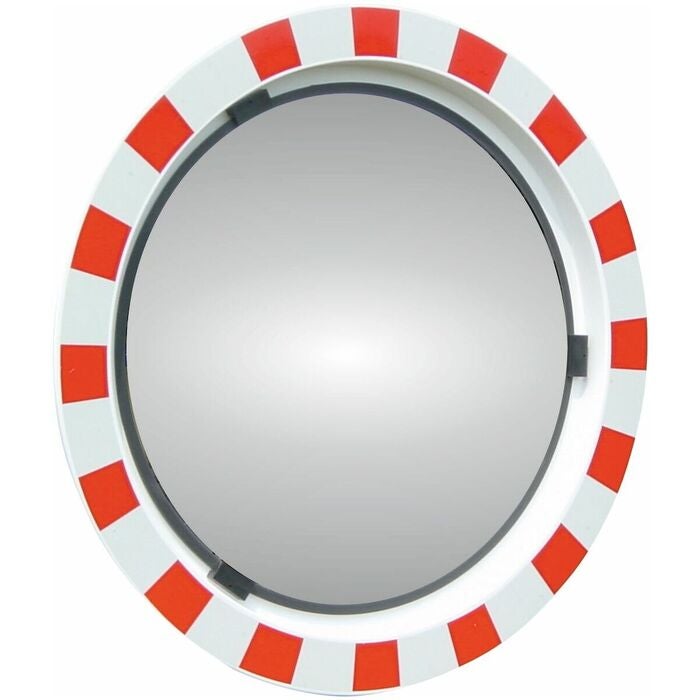 För mer säkerhet vid oöversiktliga trafikvägar, utan förvrängning. Slagfast polyesterram med reflekterande rödvit 3M-folie.