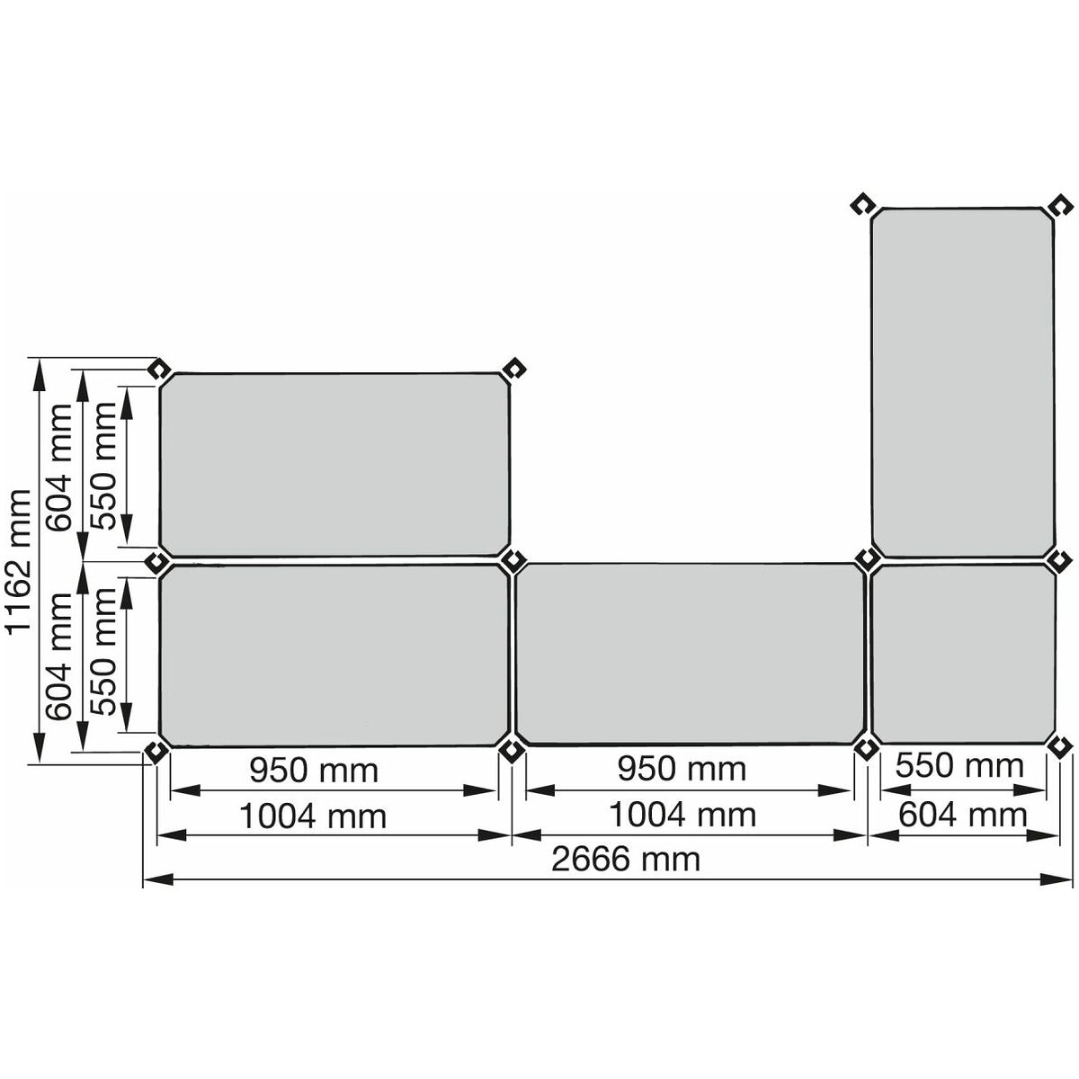 Universellt påbyggnadsställ Djup 600 mm