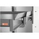 Dessutom sker en låsning på sidorna genom bultar i stativramen. Denna låsning griper in när utdragshyllan är inskjuten. Låsningen lossas genom att ett handtag under skjuthandtaget dras ut (enhandsmanövrering). I helt utkört tillstånd låses utdragshyllan på nytt i löpskenorna (dubbel låsning). Lastning med kran är möjlig tack vare att utdragshyllan är låst.
